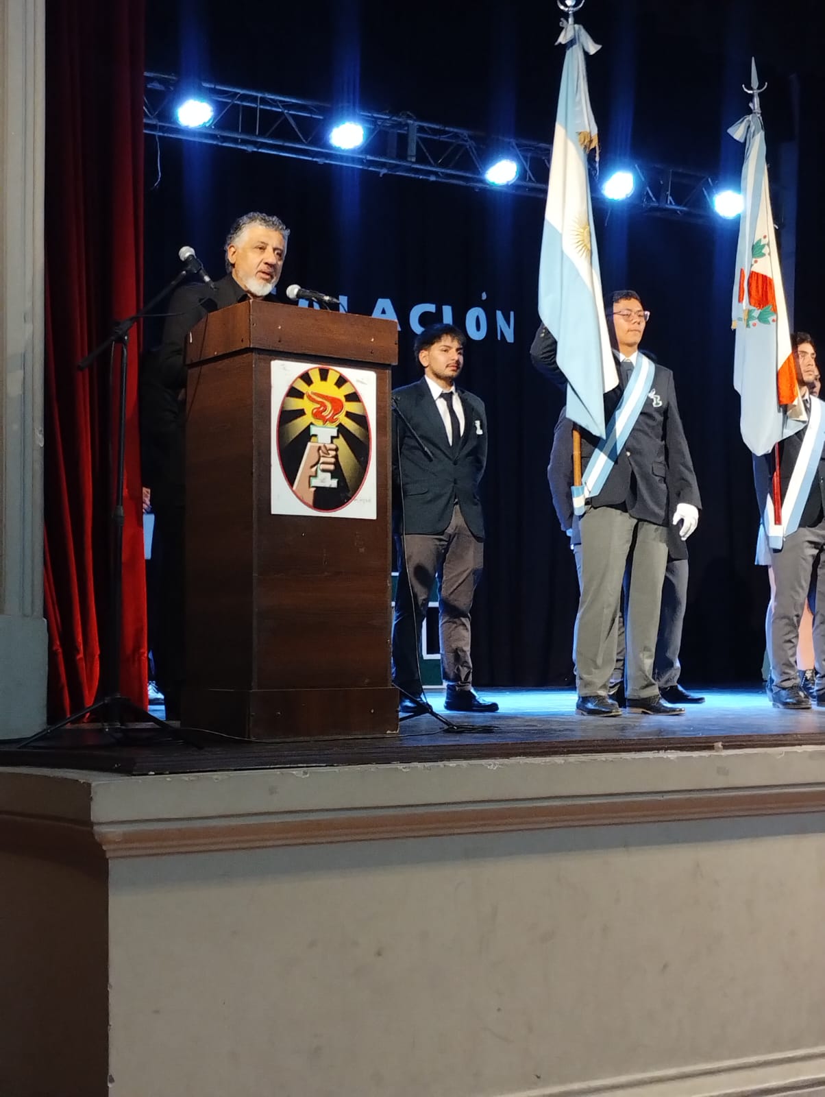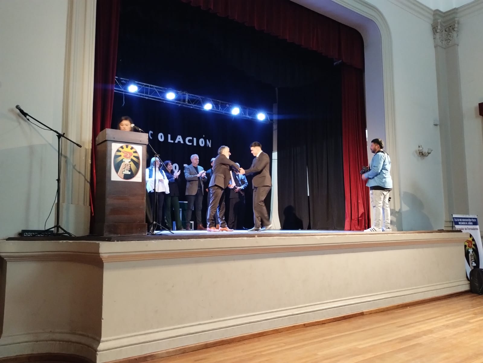 En representación de nuestro Instituto, participaron en la Colación de Grado del ISFD de Educación Física el Prof. Carlos Santillán, Jefe de Formación Inicial, y la Prof. Cecilia Deluigui, integrante de CIPE.