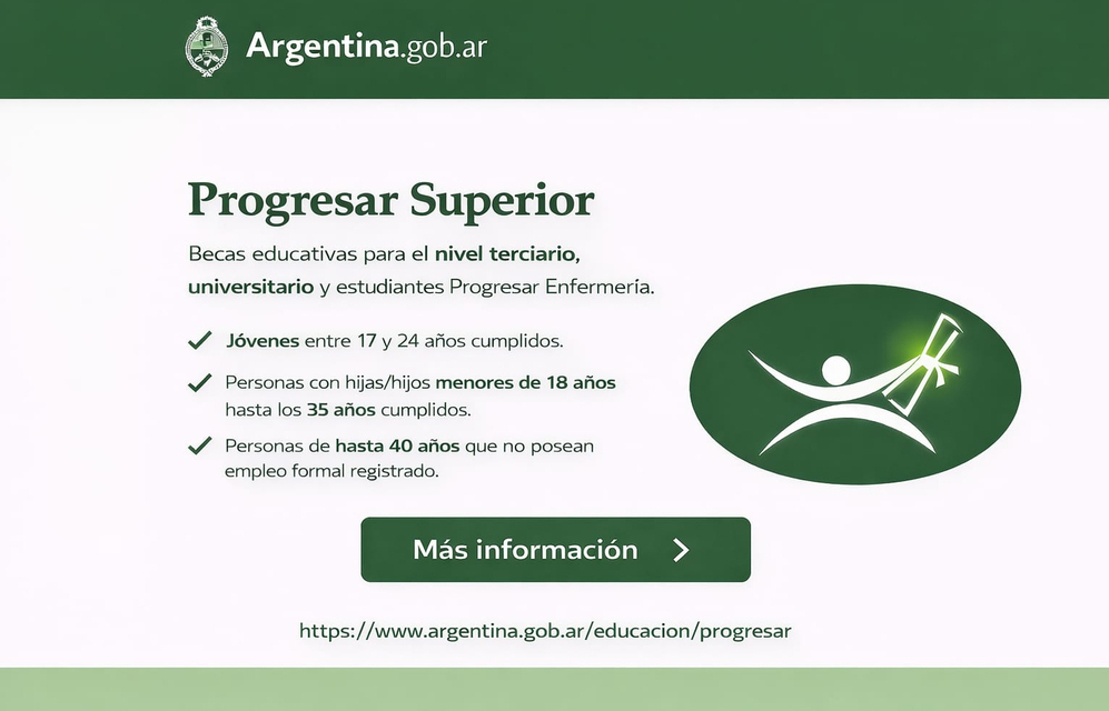 El programa Progresar Superior, continúa ofreciendo becas educativas destinadas a estudiantes del nivel terciario, universitario y de enfermería, ...