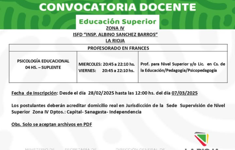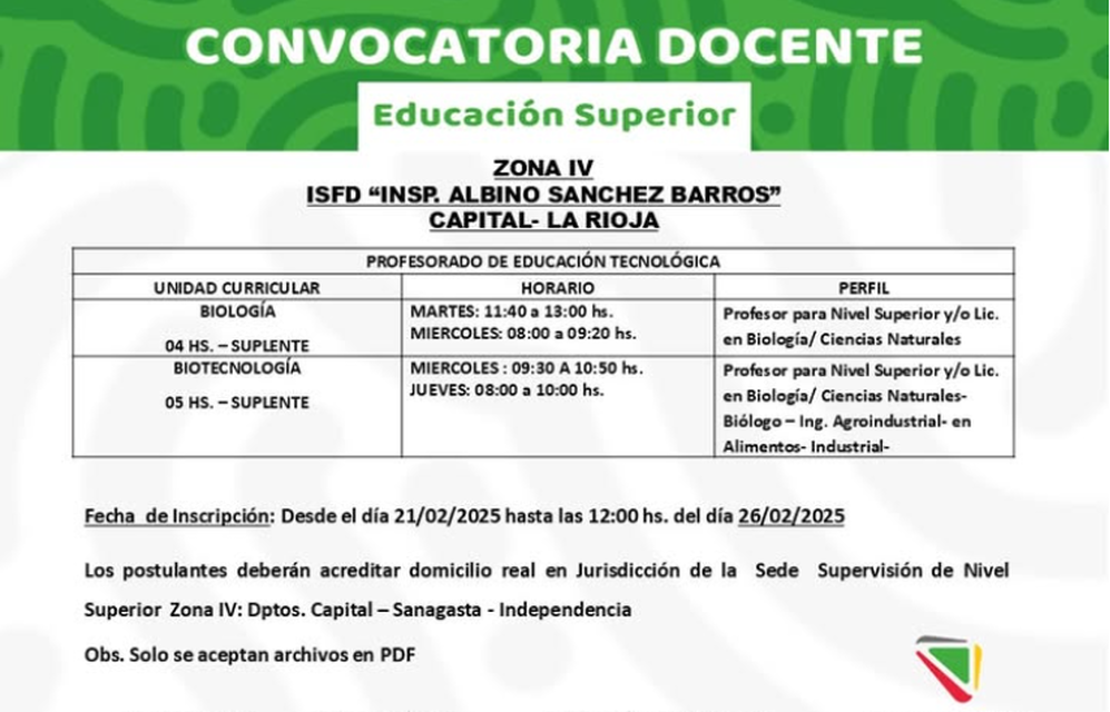 Covocatoria Docente - ISFD "Insp. Albino Sánchez Barros" 27/02/2025