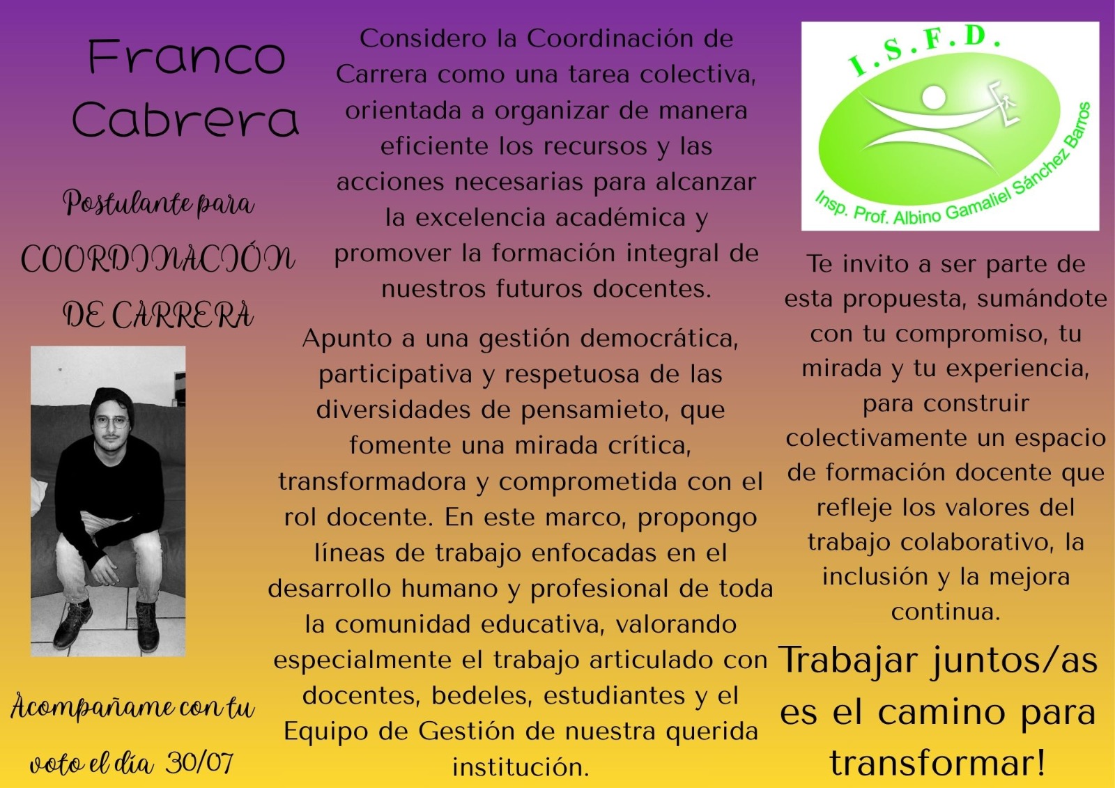 Rumbo a las Elecciones: Flyer de Candidato - Coordinación Profesorado de Inglés
