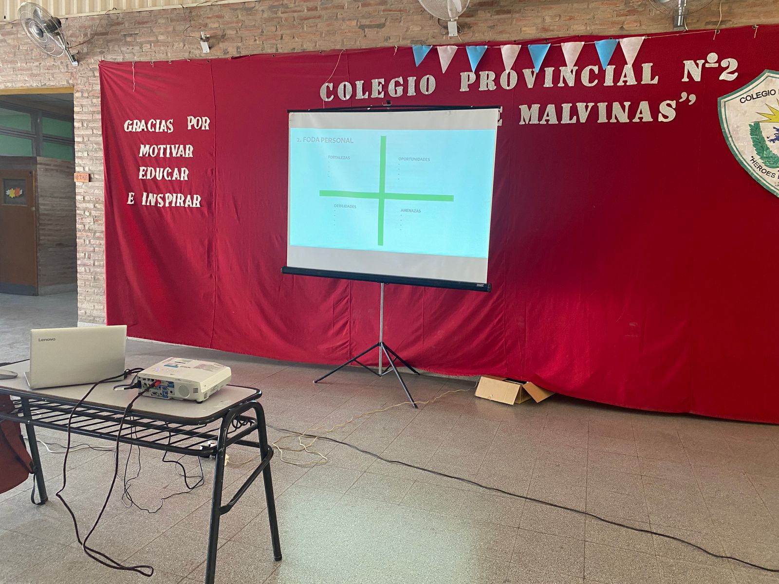 Hoy, martes 7 de octubre de 2025, se llevaron a cabo los encuentros de cierre de los talleres de coaching vocacional en el Colegio Provincia N.º 2, en los turnos mañana y tarde, respectivamente. Durante estas instancias, se trabajó con las herramientas del análisis FODA (Fortalezas, Oportunidades, Debilidades y Amenazas) y el plan de acción CAME (Corregir, Afrontar, Mantener y Explotar).