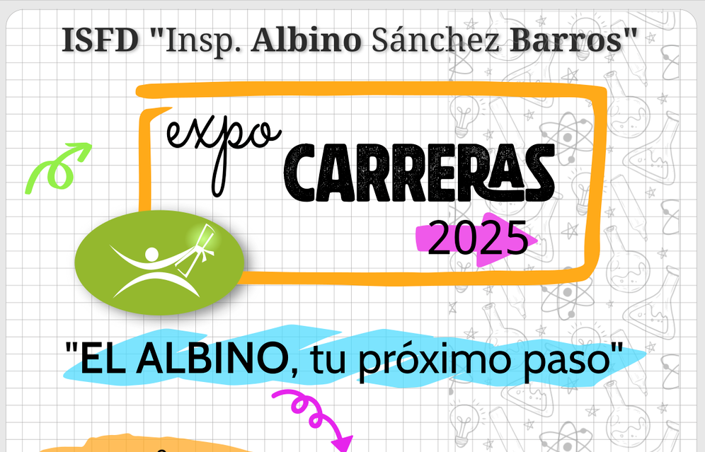 Nuestro Instituto Superior de Formación Docente “Insp. Albino Sánchez Barros” abre sus puertas para una nueva edición de la Expo Carreras 2025, un espacio pensado para acompañar a los estudiantes en uno de los momentos más importantes de su vida: la elección de su futuro académico y profesional.