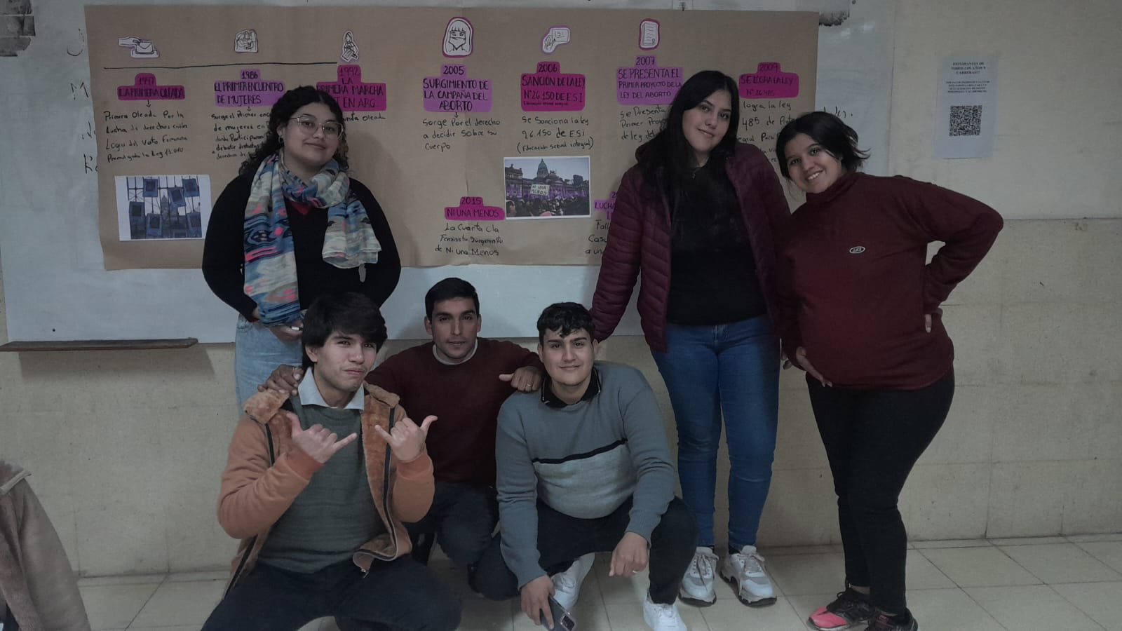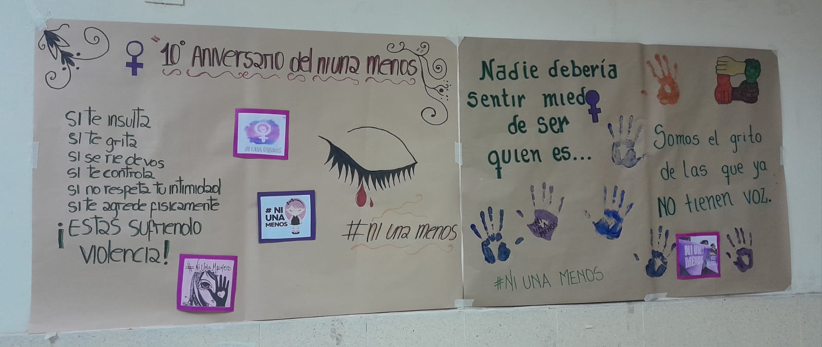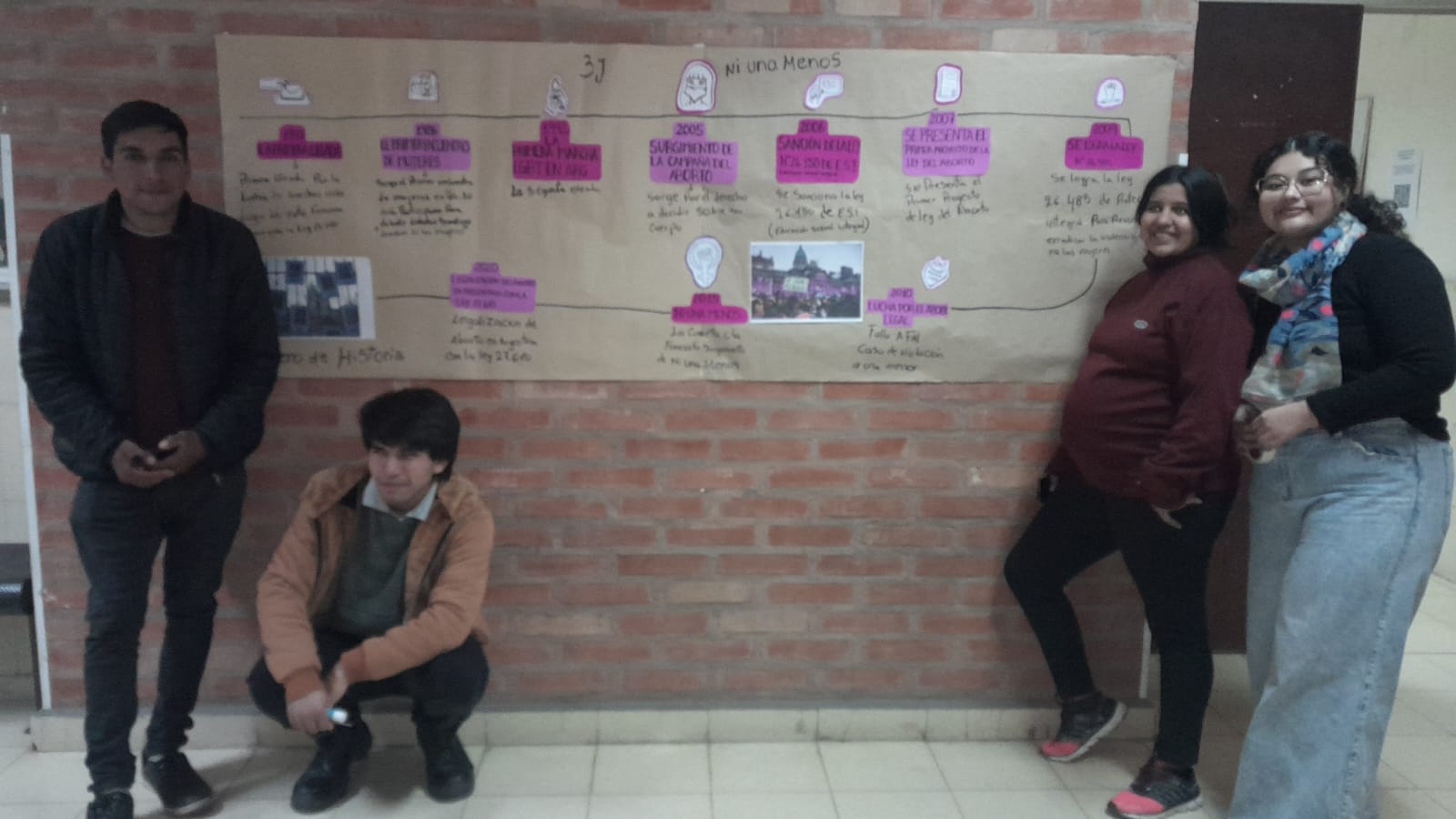 Producciones de estudiantes de 1er Año de Historia . Se trabajó ni una menos por medio de una línea de tiempo desde sus orígenes del movimiento. Guiados por la Prof. Eliana Farías