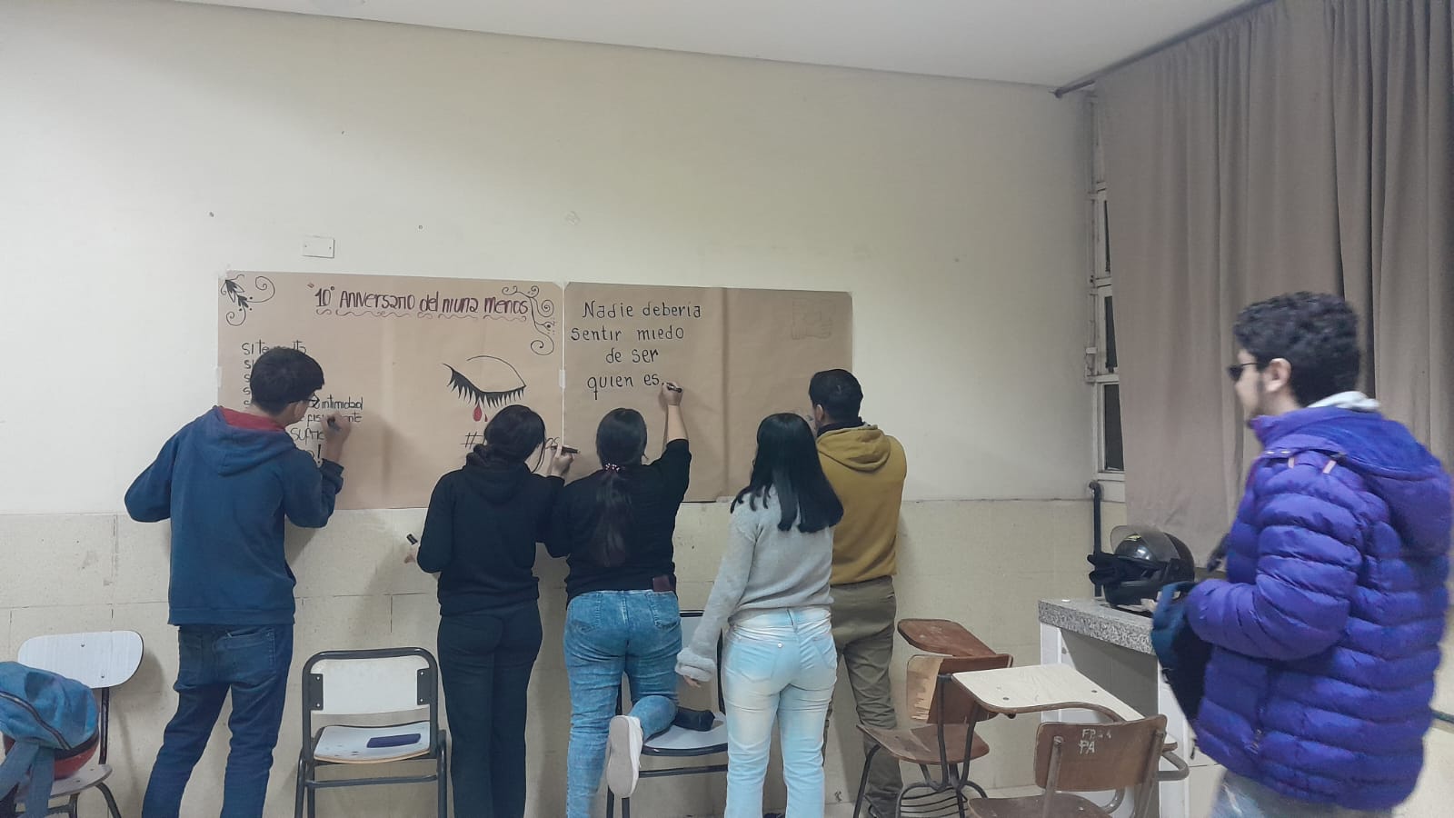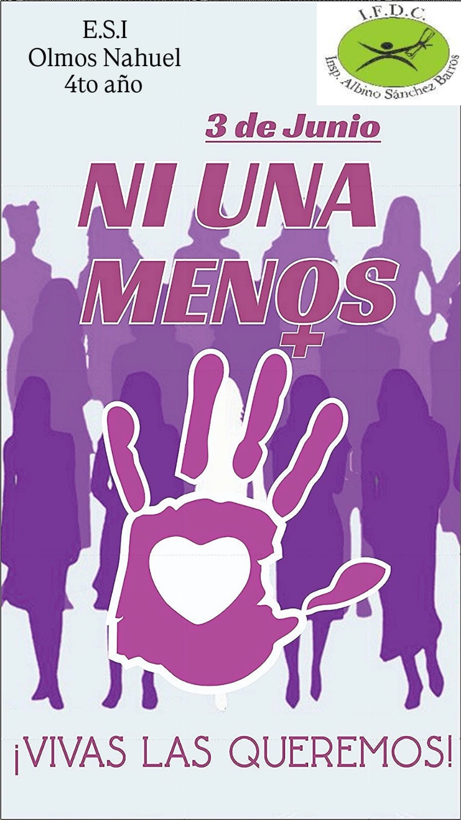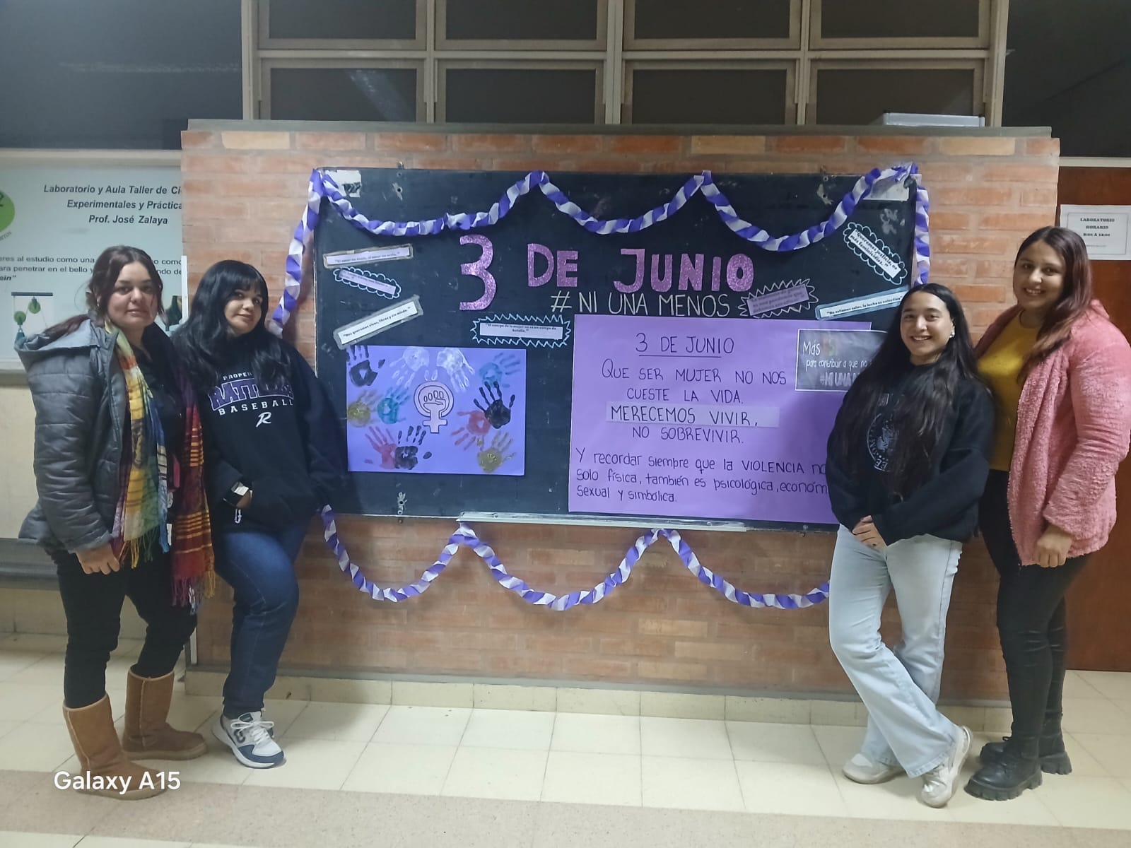 Producciones de estudiantes de 1er Año de Historia . Se trabajó ni una menos por medio de una línea de tiempo desde sus orígenes del movimiento. Guiados por la Prof. Eliana Farías