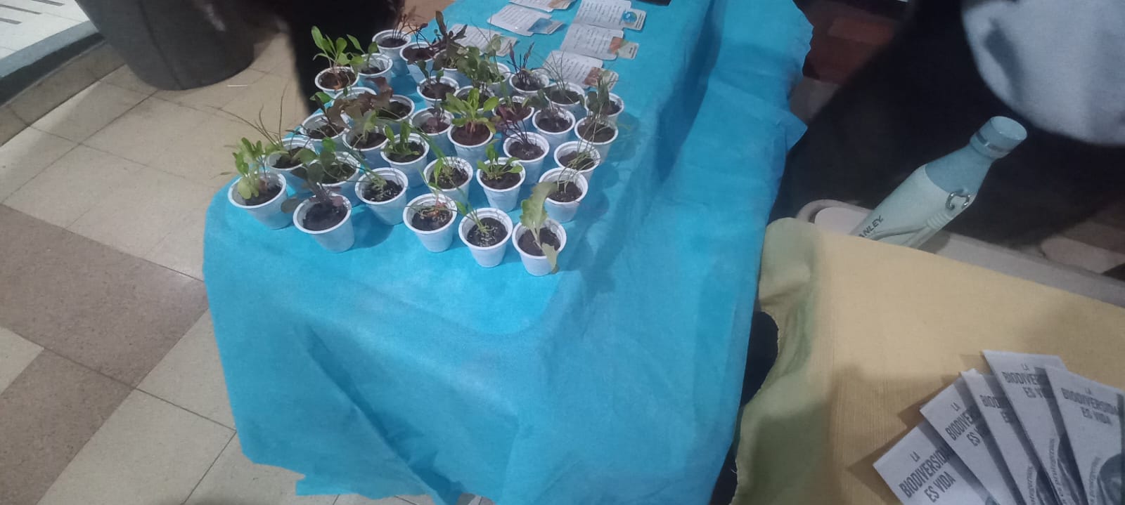 Durante la jornada un grupo de estudiantes compartieron café y panificación variada con los presentes. También hicieron entrega de folletería de concientización y plantines.