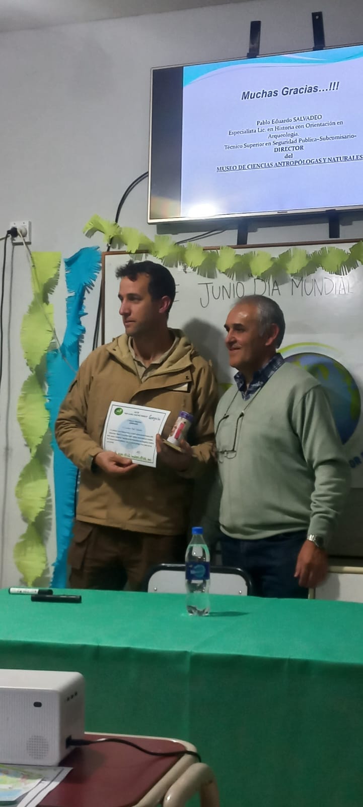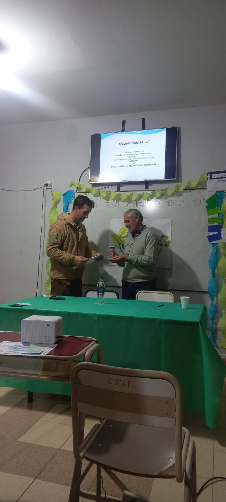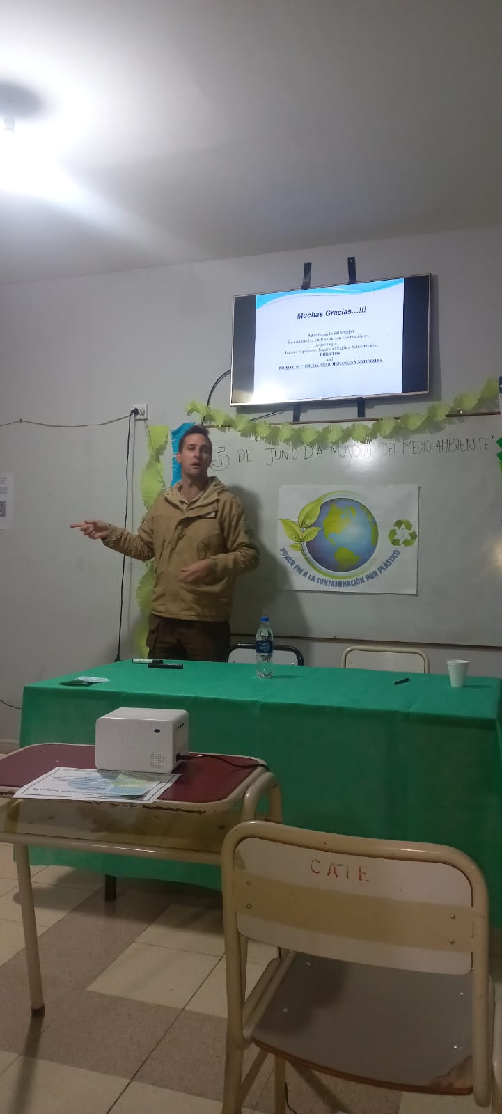 Por la tarde, los estudiantes del Profesorado de Geografía trabajaron economía circular, la huella del Carbono, la biodiversidad, reciclaje, entre otros temas en diferentes stands. También se desarrollaron charlas sobre temáticas ambientales, el Prof. Santiago Sánchez habló sobre sobre “El curso inferior del río Tajamar y sus problemas asociados con la inexistencia de un ordenamiento territorial”, el Lic. en Historia Pablo Salvadeo, Director del Museo de Antropología y Paleontología de la UNLaR realizó una presentación sobre “La Construcción de la Vida en el Ámbito Serrano” y el Lic y Prof. de Historia Carlos Folledo abordó “Aproximaciones Conceptuales a una Historia Ambiental”.